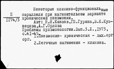 Ящик 0396 Легочные болезни IV - Легочные нагноения I