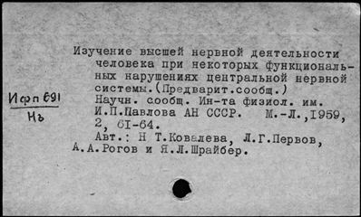 Ящик 0151 Высшая нервная деятельность II