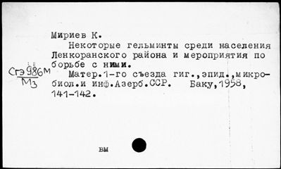 Ящик 0159 Гельминтозы I