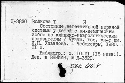 Ящик 1056 Систематическая картотека депонированных рукописей 616.4 - 616.8