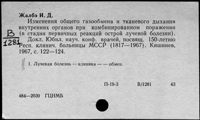 Ящик 0484 Лучевая болезнь IV