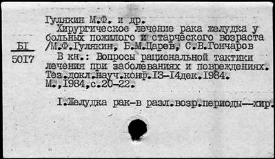 Ящик 0212 Желудка рак I