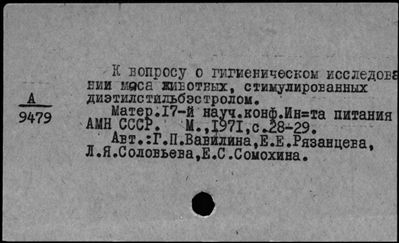 Предметный каталог (1970 - 1979 гг.)