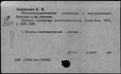 Ящик 0677 Психозы сенильные, пресенильные и инволюционные - Психозы соматогенные